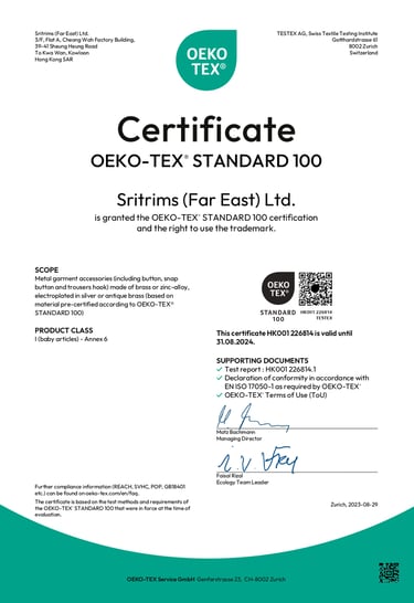 Sritrims Far East Ltd. is committed to strict industry standards, exemplified by certifications like Okeotex and ISO 9001:2008, which highlight our focus on quality, safety, and environmental responsibility. Our adherence to these certifications assures customers of our compliance with international environmental standards, showcasing our dedication to sustainable practices. By maintaining these certifications, we ensure that our products not only meet but exceed global customer expectations. Choose Sritrims for high-quality, environmentally responsible products.